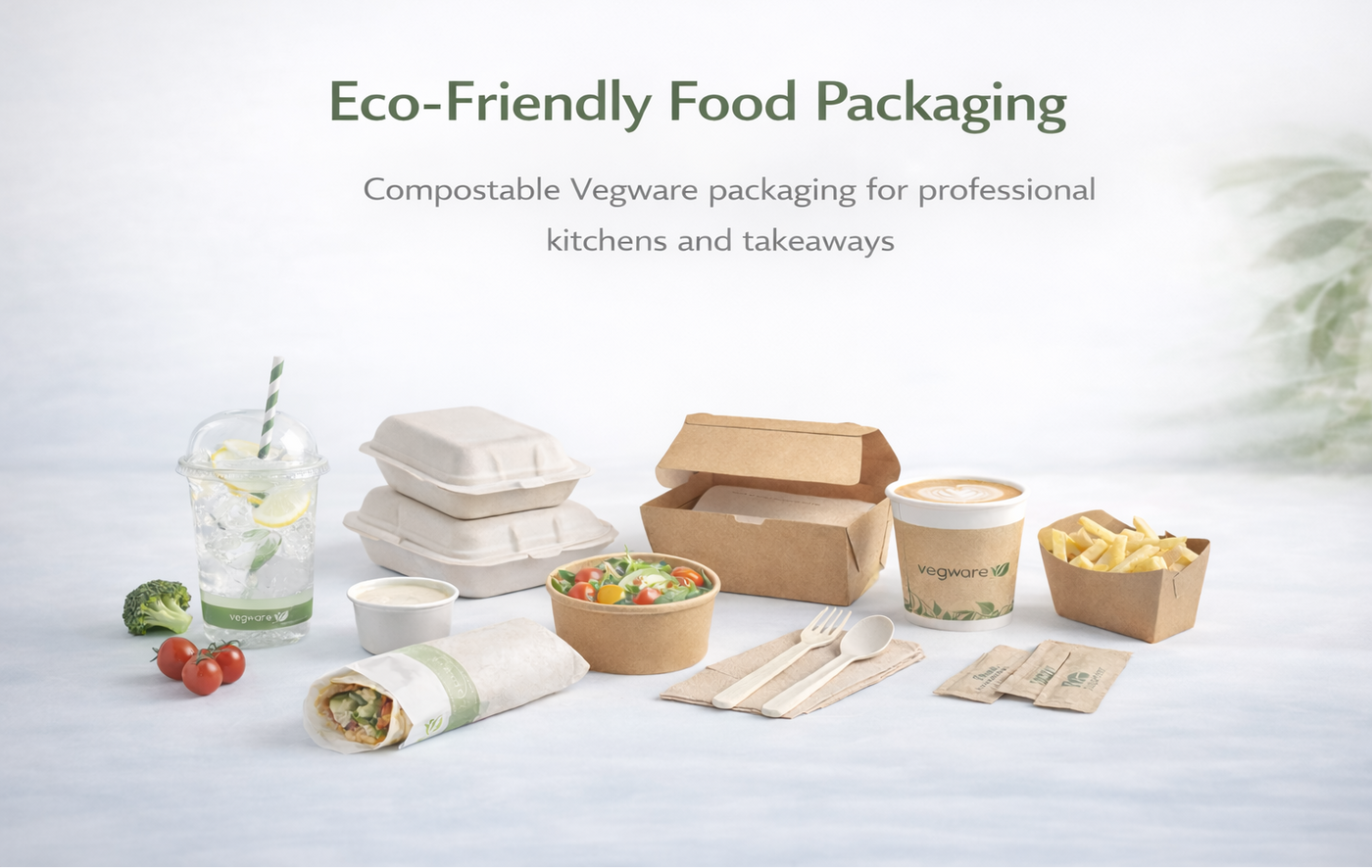 Compostable food packaging from Vegware and trusted eco brands, designed for professional kitchens and takeaways. Sustainable, practical solutions that support responsible food service without compromising performance.