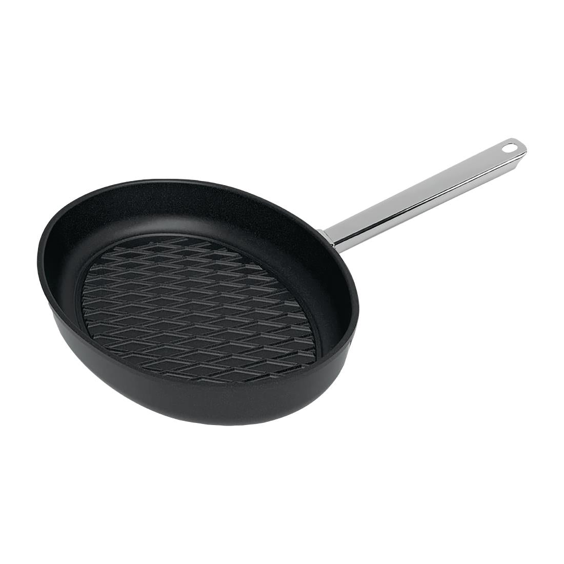 Pan with BBQ pattern and special oval shape that allows you to fry whole fish without the need for cutting. Aluminium body makes it durable and resistant to damage. A special 10 mm thick thermal base guarantees even heat distribution over the entire surface of the pan, thanks to which the frying process is faster - fish does not cool the pan, retains more nutritional properties, and at the same time is perfectly crispy on the on the outside and delicate inside, with great optical highlight. Lotan® coating enables fat-free frying, prevents the fish from sticking to the surface.Product Features