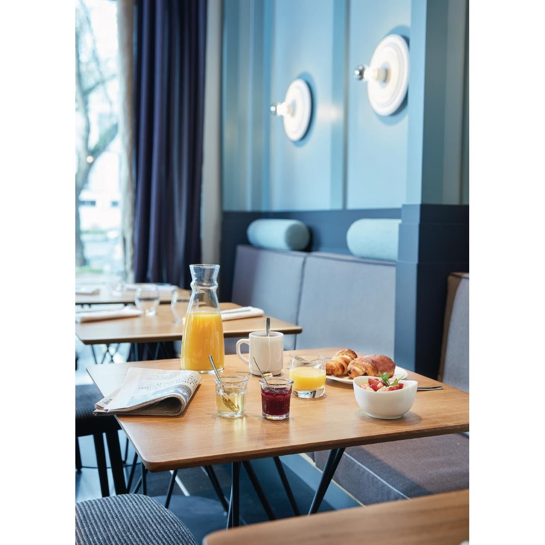 Arcoroc's Fluid carafes are built for both function and style. Their ergonomic design allows for easy handling during service, and the natural gauge makes it simple to fill them to the perfect level. The heavy base ensures excellent stability on the table or when carried on a tray. Crafted from soda-lime glass, these Fluid carafes are highly durable and are designed to last through 2,000 dishwasher cycles without showing wear.
