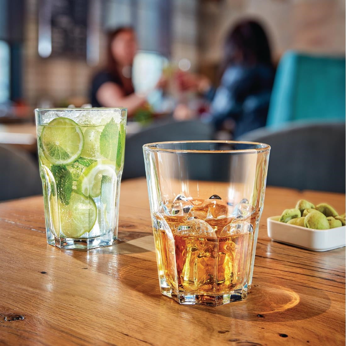 Introduce practical and stylish additions to your drink services with these 350ml Arcoroc Granity old fashioned glasses. Thanks to their panelled design, these tumblers benefit from a classic look that's ideal for any bar setting. And as they can be stacked, the Arcoroc tumblers help to save your storage space in your cupboards. Plus, the tumblers are made from tempered glass that provides excellent resistance against thermal shock, scratches and chips.