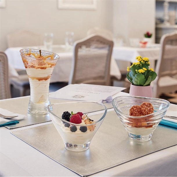 Arcoroc's Jazzed frosted bowls offer a contemporary option for serving cold desserts and ice cream, as well as premium breakfast dishes and starters. With a modern, heavyweight base and distinctive design, these dessert bowls look great on any table. Made from frosted, purity-certified glass, they are dishwasher safe for easy cleaning. Plus, their 250ml size makes them ideal for portion control. Supplied in a pack of 24, these Jazzed bowls are perfect for establishments needing consistent, stylish serveware.