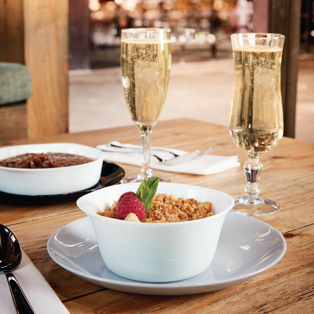 Original and affordable, the Arcoroc Normandie range brings traditional continental styling to restaurants and bars. With a lyre-shaped bowl and structured stem, these flute glasses reflect classic French heritage in their unmistakable design. Crafted from fully toughened, tempered glass, they offer exceptional impact resistance and are professional dishwasher safe for easy cleaning.
