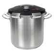 Significantly reduce your cooking times with the Artame Luna high-capacity pressure cooker. Using pressure cooking to make light work of a wide variety of dishes, the pan is able to cook up to 16x faster than other methods - while maintaining flavour, text and nutrient content. Thanks to its huge 23-litre capacity, the pan is ideal for batch cooking. This makes it the perfect addition to busy kitchens that want to streamline service while maintaining excellent cooking results.