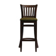 The Manhattan bar chair is the perfect height to pair with a poseur table, drinking shelf or right there in front of the pumps. Made to contract furniture standard, its solid wood construction ensures sturdiness and longevity, allowing the chair to withstand the demands of commercial environments. Its distinctive curved back with vertical slats offers a touch of traditional flair while providing excellent lumbar support. A shetland forest fabric covers the padded seat, adding a layer of both comfort and sophistication.