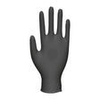 Keeping hands safe when working with potentially harmful substances is made easy with these powder-free black nitrile gloves in size small. The super-strong nitrile material offers an excellent barrier against oil-based solvents, chemicals and microorganisms, while also making the gloves highly tear, rip and puncture-resistant. This will help to keep staff's hands protected against contamination when cleaning, handling food or working with potentially hazardous substances.