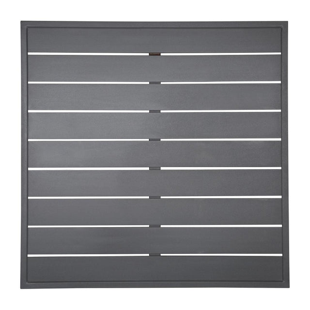 Introduce stylish and practical furniture to your dining areas, with this aluminium, square tabletop from Bolero. With a slatted, dark-grey construction, the tabletop boasts an industrial and modern look that suits gastropubs, pavement cafes and beer gardens alike - giving your furniture collection a stylish upgrade.