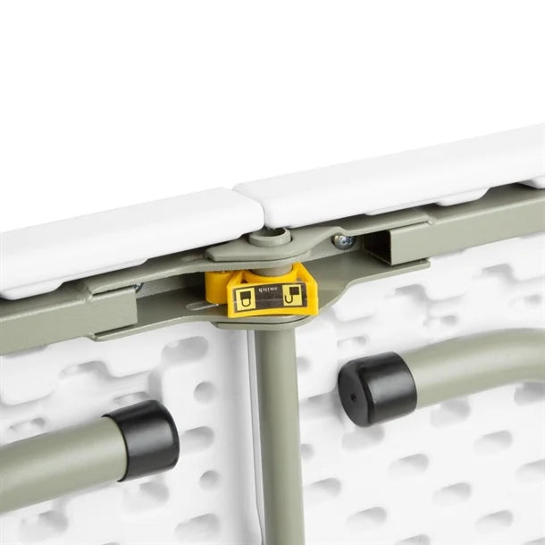 The white tabletop is made from a high-density polyethylene for excellent scratch resistance and durability in all weather conditions, while the wipe-clean surface requires minimal maintenance. At the end of the shift, the table's central folding design makes it quick and easy to pack away - it's less than one metre in length when folded.