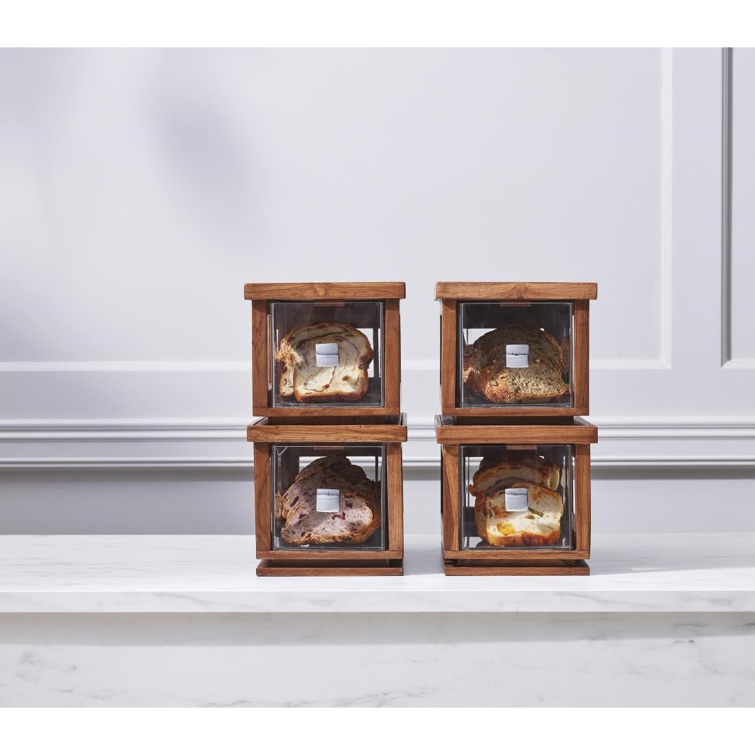 Manufactured from reclaimed teak wood, this ash grey bakery box is both environmentally friendly and cost effective, while its natural properties make it resistant to heat, light and moisture. The box is fitted with an acrylic drawer and is stackable for space efficiency.