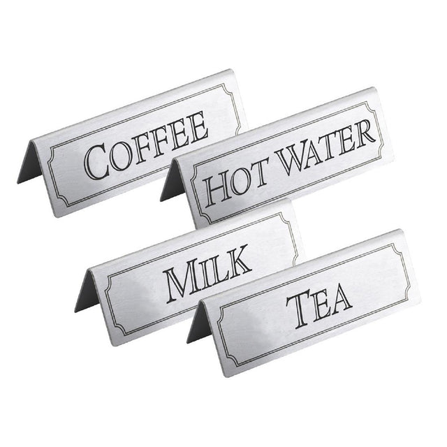 Ideal for restaurants, hotels and event venues, this Beaumont "Hot Water" table sign helps you clearly label hot beverage stations. Made from durable stainless steel, it is both easy to clean and maintain.