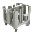 Cambro's adjustable dish caddy provides flexible storage for various dishware sizes and styles in one unit. Its six adjustable towers can be set up to hold 4 to 8 stacks of dishes, accommodating 45 to 60 dishes per stack, depending on their type and style. This makes it ideal for table service in large banquet halls, restaurants and hotels that serve different dishes regularly.