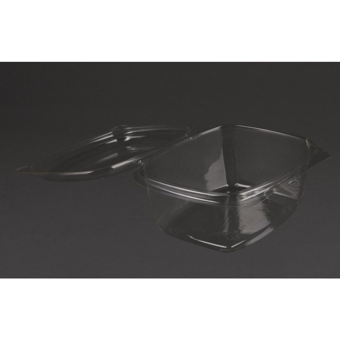 Ideal for cold salads, desserts and deli goods, these 16oz Vegware compostable PLA hinged-lid deli containers give you a functional and sustainable alternative to oil-based plastic containers at a reasonable price. Made from plant-based PLA, these containers are completely compostable and emit less carbon during production than traditional plastic packaging. By using these compostable containers, you can minimise the amount of waste you send to harmful landfill sites, reduce your business's environmental impact and meet consumer demand for greener alternatives to single-use plastic packaging.