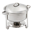 Vienna round chafing set includes water pan, food pan, lid and single chafing can holder.