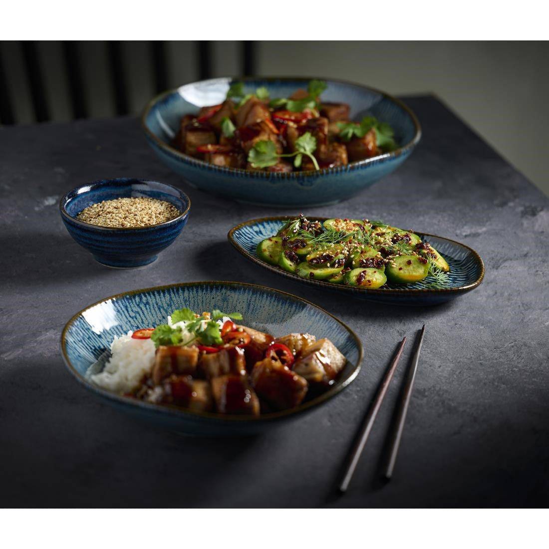 Churchill Envisage Cascade Sapphire Blue Natural Oblong Plates 219x130mm (6 Pack) - JC661 is backordered, please check stock details for dispatch times.