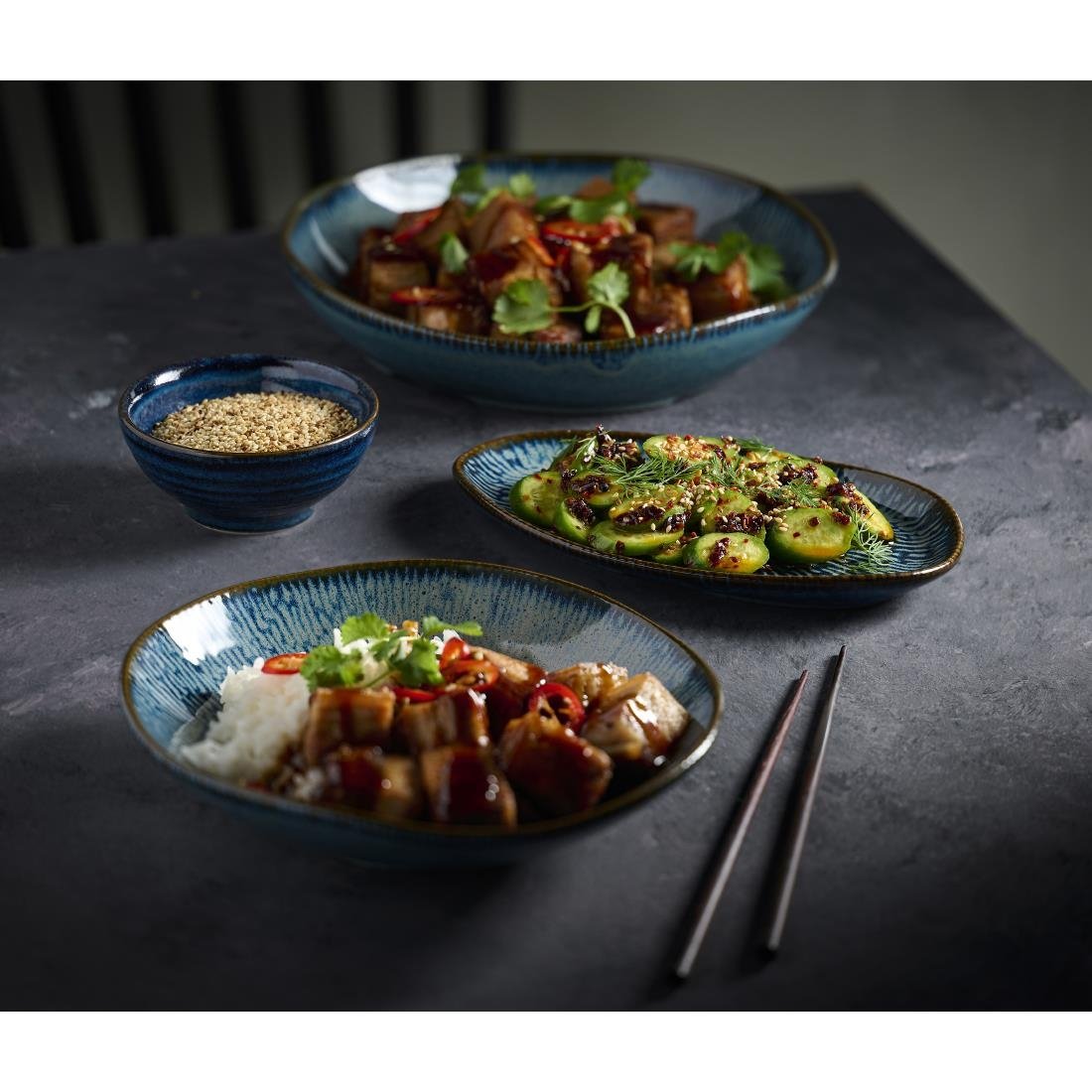 Churchill Envisage Cascade Sapphire Blue Natural Oblong Plates 260x150mm (6 Pack) - JC662 is backordered, please check stock details for dispatch times.