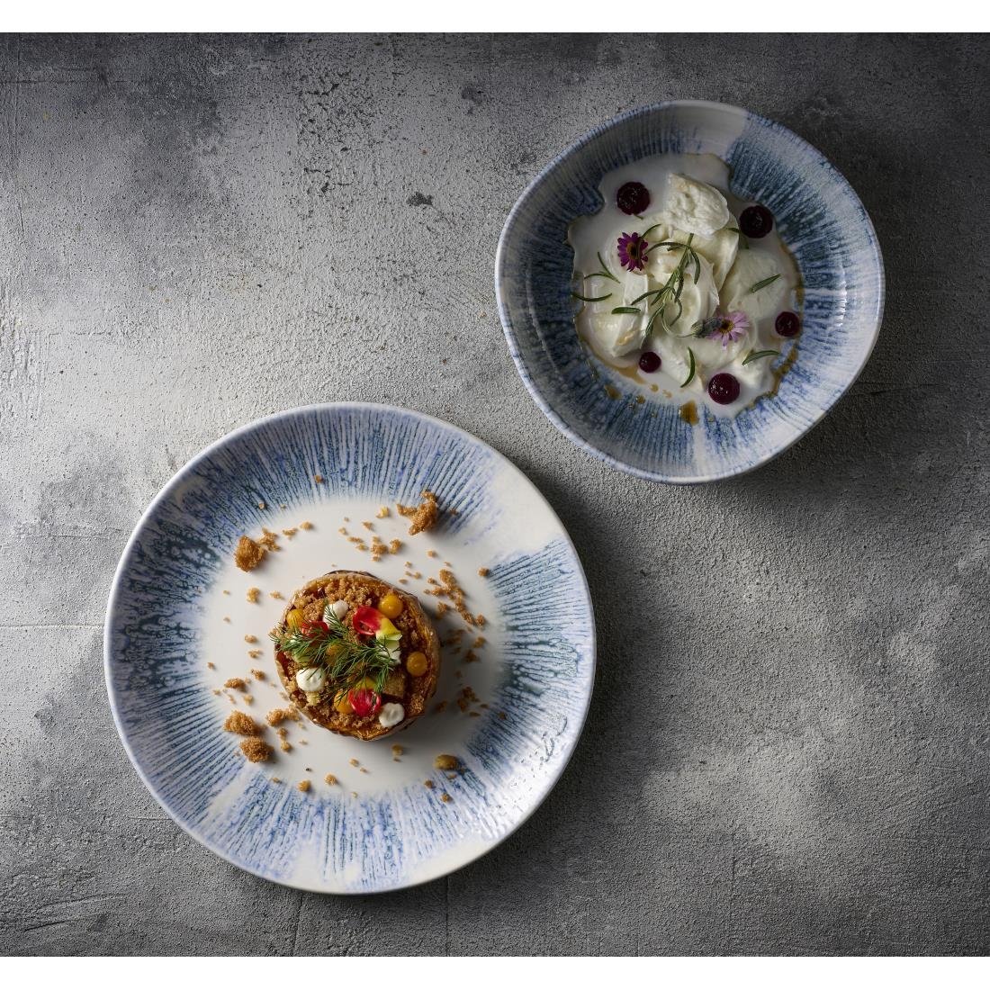 Named after the Lyra constellation, Churchill's Lyra collection brings a fresh, standout look to the table. Each piece features a bold starburst design with clean, linear lines inspired by celestial forms. The cosmic pattern frames food beautifully, letting dishes take the spotlight.