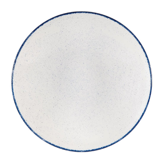 Create truly charming tabletop presentations with these 385(Ø)mm Churchill Stonecast Hints blueberry indigo coupe bowls. Made with a soft white colourwash, hand-applied speckled finish and contrasting indigo rim, these large coupe bowls work to accentuate the rich and vibrant palettes within your food. This gives you the ideal canvas to frame your large main courses in a more interesting and attractive way. The hand-decorated finish also gives each bowl its own slightly unique look, adding character and life to your table settings. Produced with a fully glazed foot, this crockery can also be safely stacked, allowing for space-efficient storage.