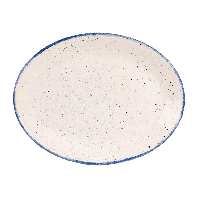 Churchill Stonecast Hints Oval Plates Indigo Blue 305mm (12 Pack) - DS588 is backordered, please check stock details for dispatch times.