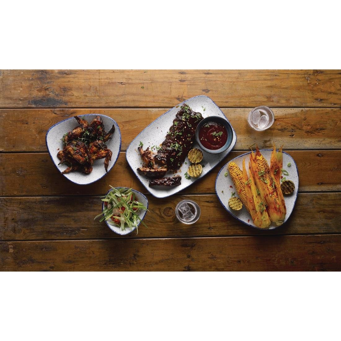 The triangular shape of these 229(Ø)mm Stonecast Hints plates makes it easy to plate everything from pies and tarts to a variety of contemporary cuisines. These plates are made of Churchill's super vitrified base and are therefore incredibly strong and hardwearing whilst retaining a high quality feel. The bright glaze contrasts with the blue indigo rim and makes a rustic yet modern framework for your food. Combine with other Stonecast hints colours in order to create your own unique tableware collection.