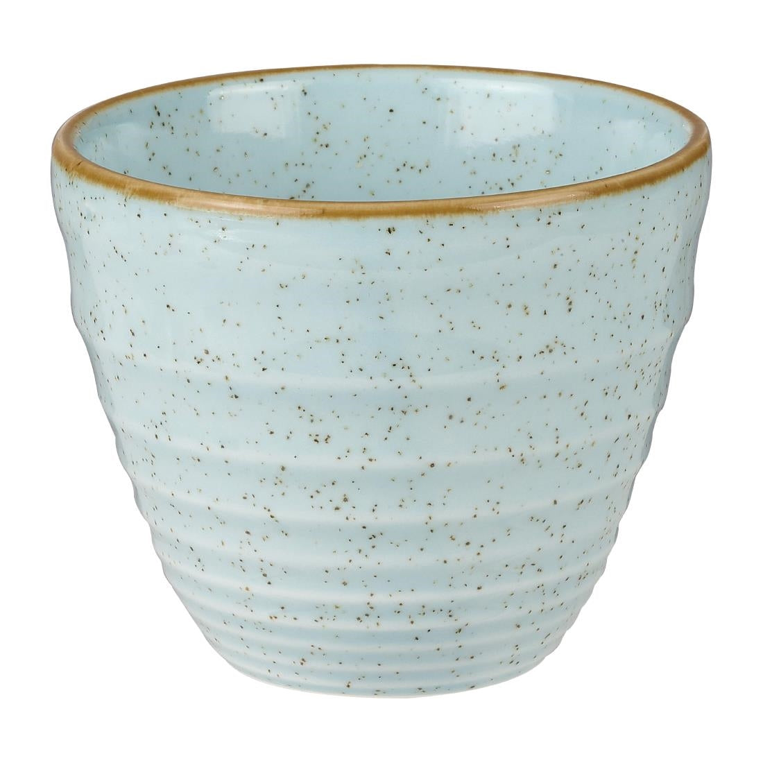 Give your chips, fries or potato wedges a more vibrant home with these duck egg blue chip mugs from Churchill. Featuring a contrastingly coloured rim and elegantly ridged design, these flecked pots are ergonomically designed to be perfect for snatching that last chip! Also a fantastic way to serve thicker dipping sauces such as humus or guacamole, these charmingly rustic pots are made from Churchill's incredibly strong ceramic and designed to take the rigours of extensive daily commercial usage.
