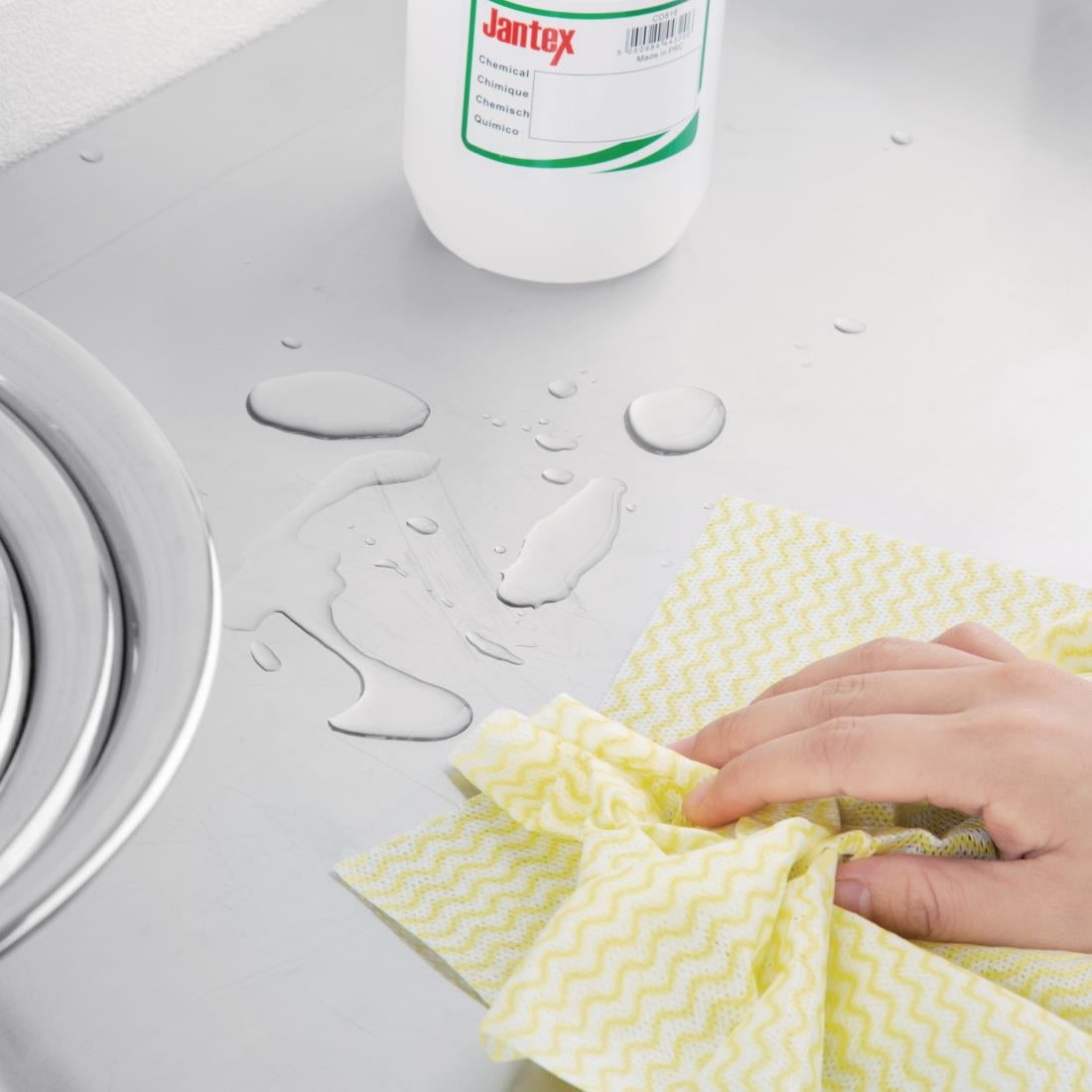 These yellow Jantex cleaning cloths are perfect for any cleaning task, and come on a roll of 100 for convenience. They are designed for colour coded cleaning, helping to prevent the risk of cross-contamination. As the cloths are non-woven they will dry rapidly, and leave less fibres behind than alternative cloths to help you achieve the perfect finish. Suitable for all catering/hospitality establishments.