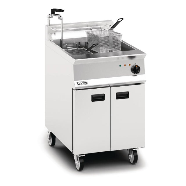 Lincat Opus 800 Single Tank Twin Basket Free Standing Electric Filtration Fryer OE8108/OP - DM523 is backordered, please check stock details for dispatch times.
