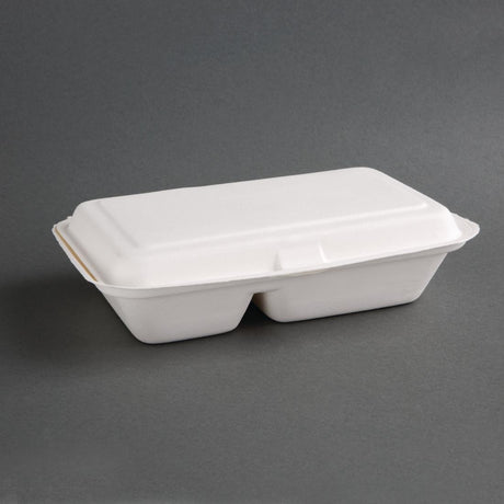 - Fiesta Compostable - FC541 - Fiesta Compostable Bagasse Two-Compartment Hinged Food Containers Natural Colour 253mm (200 Pack) - STOCKED In stock (70 units)£3634- £4399Unit price /Unavailable