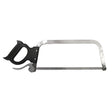 This stainless steel framed crosscut Bow Saw features a coarse 14" blade, and a firm black plastic handle, the ideal cutting utensil for butchers.