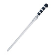 This salmon slicer from Dick has been designed with a half bolster to give you use of the full length of the blade, making it easier and quicker to slice fish. The blade has undergone targeting tempering over several stages to give it a unique and sharp cutting edge and the scalloped sides stop the meat sticking to the blade. This makes it even quicker for you to effortlessly glide through the meat for perfect slices.