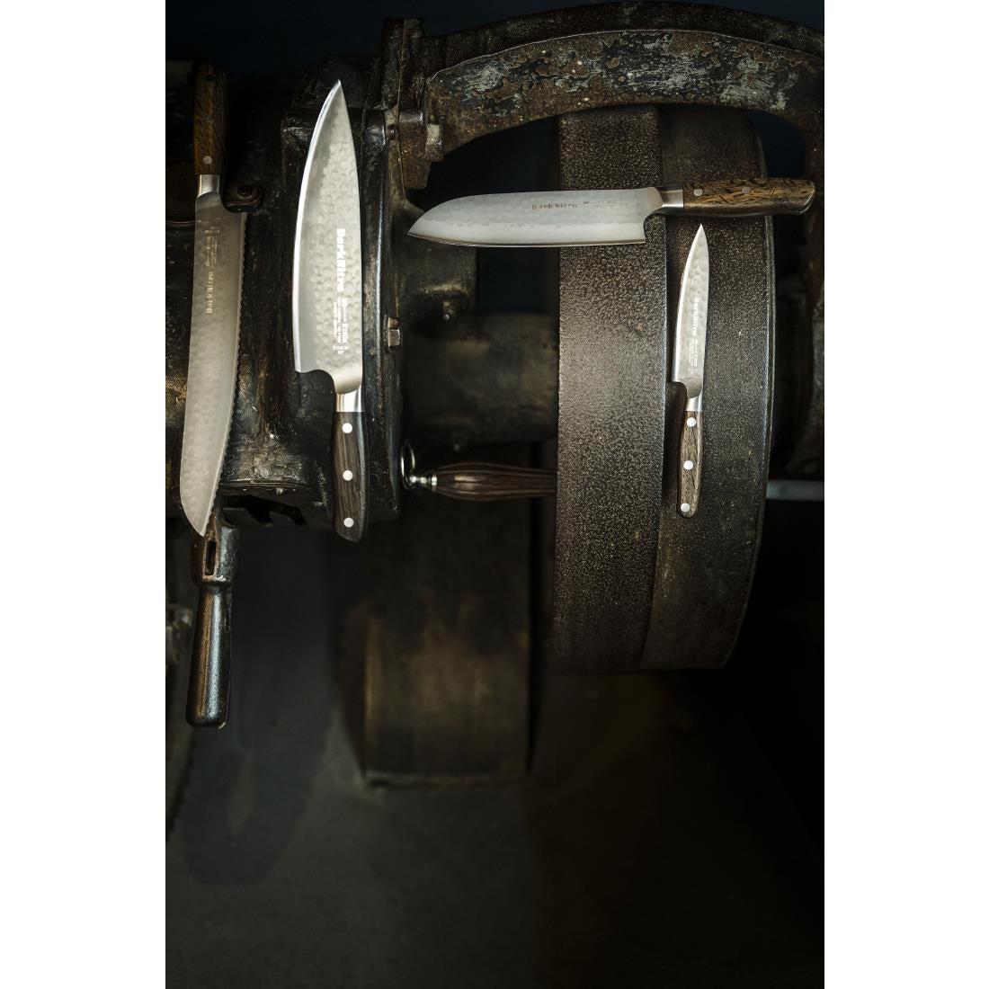 - The elegant oak handle and forged bolster ensure a perfect balance of aesthetics and comfort in hand