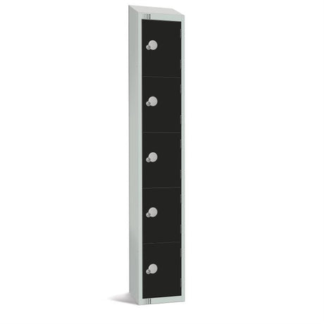 Elite Five Door Coin Return Locker with Sloping Top Black