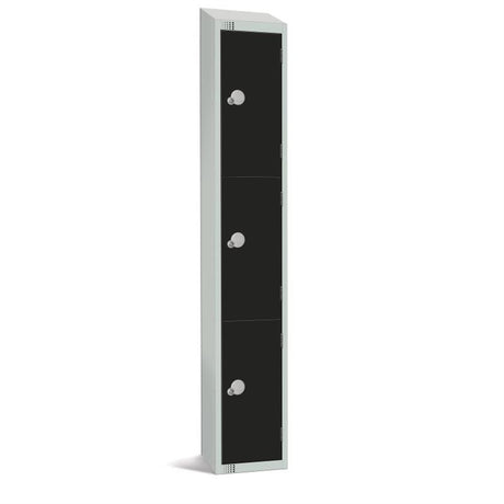 Elite Three Door Coin Return Locker with Sloping Top Black