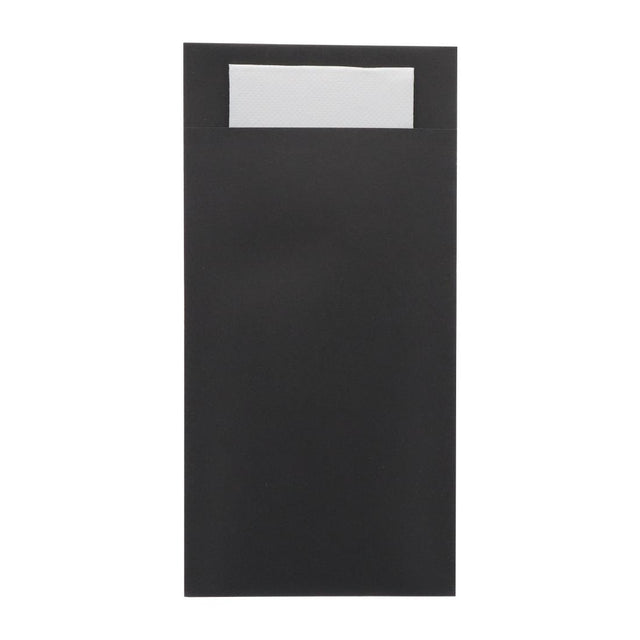 Europochette Royal Size Black Cutlery Pouch with White Soft 2ply Napkin (250 Pack)