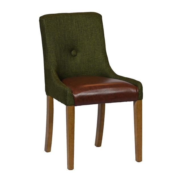 Enhance your venue with the stylish and durable Bath dining chair. Supplied in a set of six, this commercial-grade chair is crafted with modern manufacturing techniques for reliability and strength. Its rubberwood frame features a weathered oak stain that complements the woven fabric back in Shetland Forest green. The contrasting seat, upholstered in easy-clean Bison Espresso vinyl, provides both comfort and elegance. For added safety, the chair meets Crib 5 fire retardant standards, offering peace of mind in public spaces.