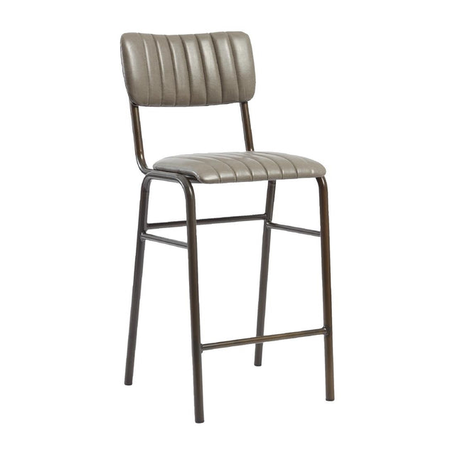 Give your bar, restaurant or coffee shop a chic, industrial look with this Tavo stacking bar stool. Standing at a height of 1000mm, the seat and back pad of the stool are wrapped in premium vintage faux leather, featuring a distinctive ribbed pattern that seamlessly blends style and comfort. This contrasts beautifully with the extremely strong tubular clear lacquered metal frame. For easy storage, the bar stool can be stacked six to eight chairs high (user's discretion) depending on the height and stability in the chosen storage area.