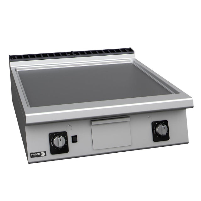 Powerful and reliable, the FT-G910 L Fagor 900 Series countertop smooth plate gas griddle provides the perfect cooking surface for busy professional kitchens. Providing an impressive 18.5kW of power across its 800mm wide, 20mm thick mild steel smooth cooking plate, you get a fast heat-up and rapid recovery times - essential for those busy lunch or dinner hours.