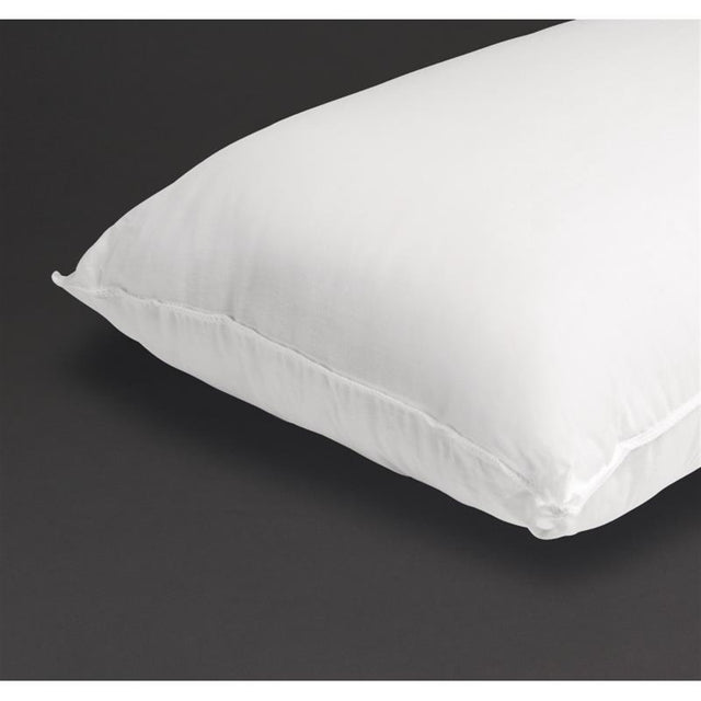 The Ultraloft pillow from the Mitre Comfort range is filled with a comfortable Hollowfibre material for a firm level of support. Each pillow is covered in durable polycotton to ensure it lasts through regular heavy-duty use. With a weight of 850g this thick, plump pillow will help your guests ease into a healthy, natural sleep and feel refreshed in the morning.The pillow is also flame retardant to BS7175 Source 2.