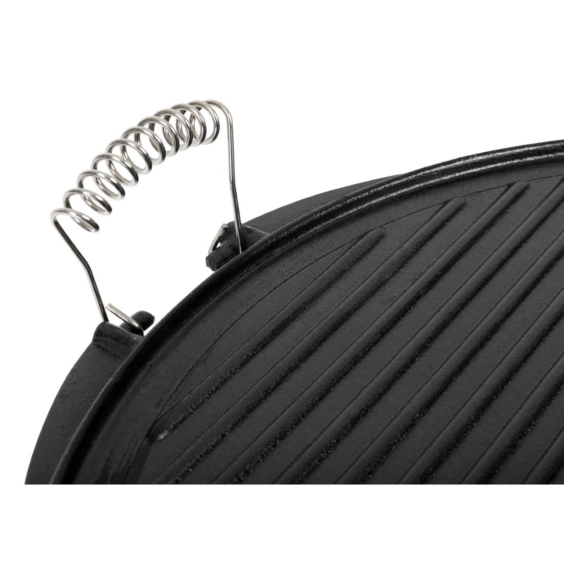 Suitable for open fires, barbecues, and 350mm and 400mm Paella burners, the Garcima 12055 round griddle pan boasts two large handles that facilitate easy lifting.