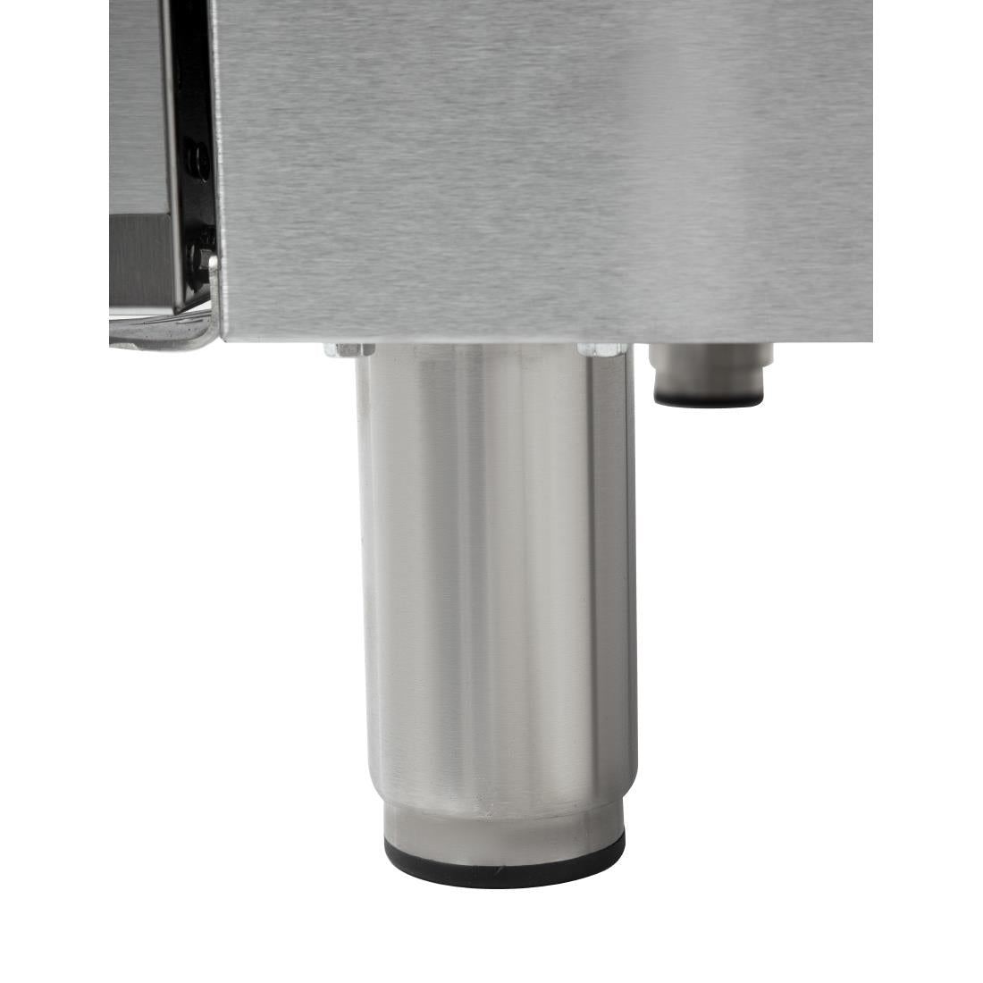 A six burner Dominator Plus gas range from Falcon, featuring six high performance burners with cast iron pan supports and a general purpose oven. The removable stainless steel hob and vitreous enamelled gas oven chamber are both easy to clean, as well as to use. The wide temperature range and five shelf positions make the range extremely versatile, and the twin oven doors with individual catches helps retain heat increasing energy efficiency. The range also features laser etched control icons and low profile oven door handles for reduced intrusion into working space, and is 2/1 Gastronorm compatible.