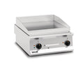 Set up, switch on and be ready to sear meat in minutes with this highly efficient Lincat Opus 800 Griddle. Benefitting from exterior chrome plating, the surface heats up quicker than steel models with less energy loss as well as reduced heat radiation, making it well suited for confined kitchens or mobile catering where the area heats up easily. Two separately controlled heat zones give you the option of operating either zone independently to provide a smaller cooking area during quiet periods as well as offering versatility when cooking two separate meals simultaneously.