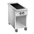 Once service is over, the unit is effortless to clean, with strong stainless steel and toughened ceramic glass construction. And thanks to the built-in stand, the hob is set to an ergonomic work height, whilst also including handy storage space below. The stand also includes handy braked castors, allowing you to reposition the unit for cleaning or maintenance.
