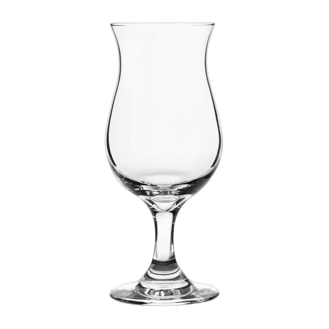 Serve a wide range of beverages with class and character in Libbey's 311ml Embassy Hurricane glasses. Bringing together style and strength, the glasses' curved bowls and short stems create a unique visual appearance and allow garnishes to sit securely on the rim. Their soda-lime glass construction gives them the durability to withstand frequent, repeated use in busy bars and restaurants.