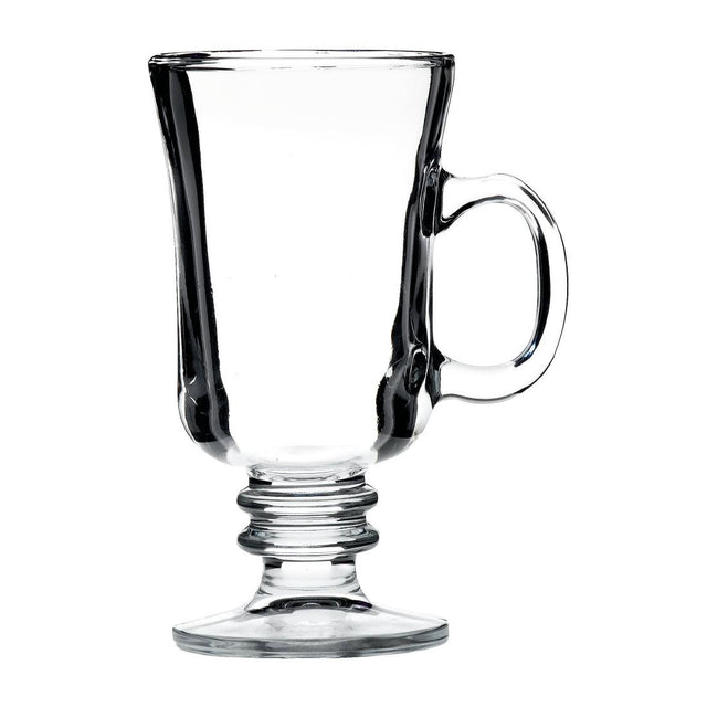 Serve barista-style beverages with these Irish coffee glasses from Onis. Ideal for use in any commercial catering environments, the 230ml glasses are durable enough to withstand the rigours of day-to-day use. They feature a classic design with a perfectly positioned handle which allows for comfortable use. Supplied in a pack of six, each glass is easy to clean and care for, as they are dishwasher safe.