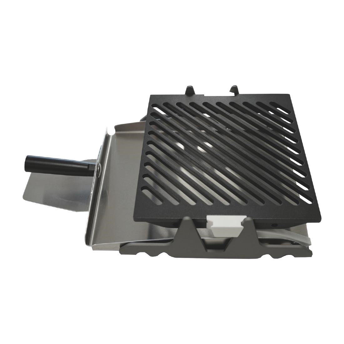 The Merrychef PSR163 panini press perfectly compliments your Merrychef high speed oven. This accessory uses a paddle to slide food into the press between a top and bottom plate. When the paddle is removed, the grill lowers to compress the food, making this incredibly easy to use compared to other solutions.