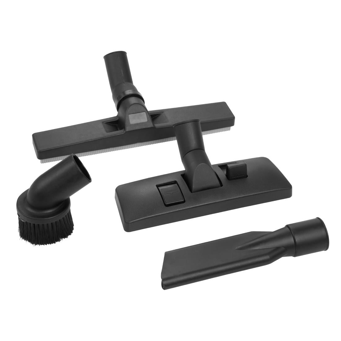The vacuum comes complete with wet and dry heads, crevice tool, and dust brush, ensuring you're equipped to tackle any cleaning challenge. Whether dealing with liquid spills or dry debris, the comprehensive accessory kit allows you to clean thoroughly in all areas and tight spaces.