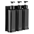 - Wall-mounted triple dispenser for body wash, shampoo and conditioner