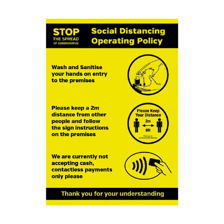 Social Distancing Operating Policy Poster A3 Self-Adhesive
