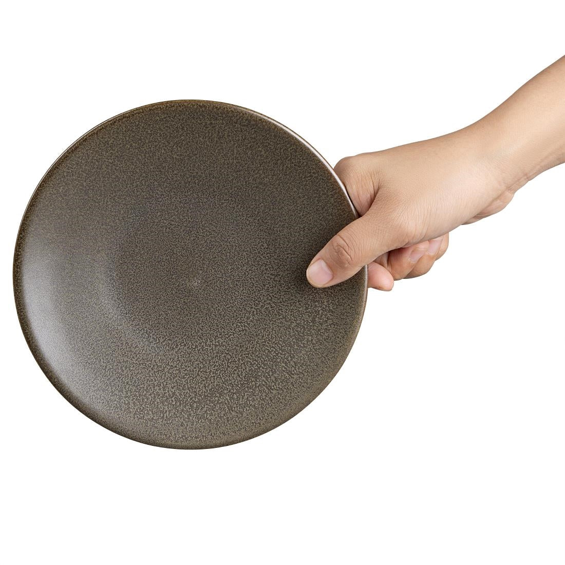 Crafted from porcelain, these Olympia Ember Mahogany coupe plates are backed by a lifetime edge-chip warranty for added strength and durability. Their practical design makes them easy to stack and store, while the unglazed foot helps prevent them from slipping.