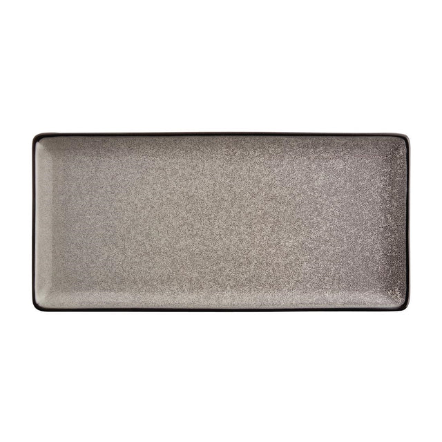 In a grey stone effect, this rectangular plate from the Olympia mineral range is ideal for those looking to add a charismatic touch to their food creations. Constructed from porcelain, this plate is tough and hardwearing, suitable for everyday use in your restaurant. Each plate has hand painted rims and individual textures, making every one unique as the next. The rectangular shape is great for presenting both personal dishes and an array of grazing dishes.