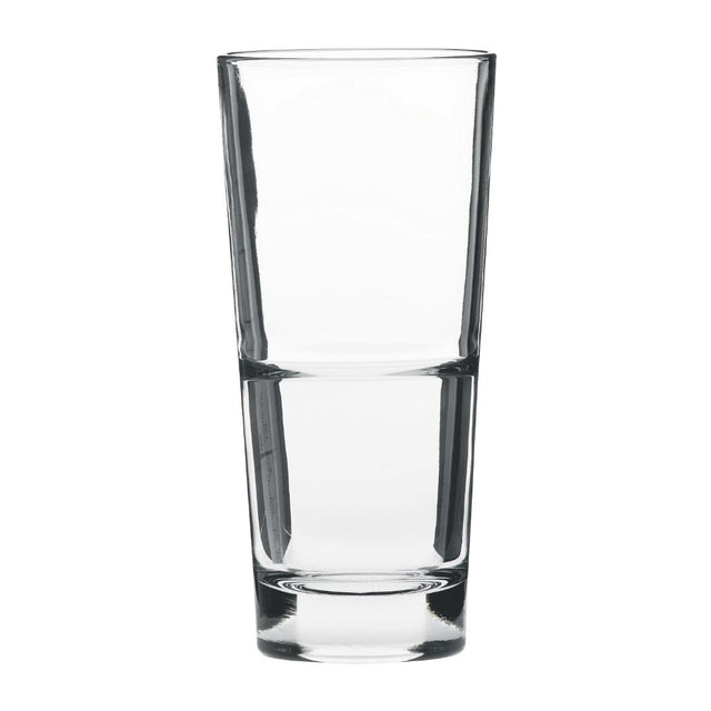 Endeavor beverage tumblers from Onis are designed to accommodate any soft drink or cocktail service, offering both shape and capacity. Supplied in packs of 12, these 410ml tumblers are treated with the Onis Xtratuff strengthening process, which enhances their resistance to thermal and mechanical shock. With a stackable design that saves space, they are also dishwasher safe, ensuring quick and easy cleaning after service.