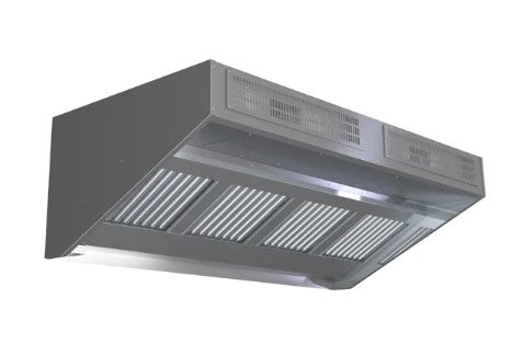 Manufactured with a full length air in plenum, replacement air is drawn by a supply fan/s, from which air flows in to the kitchen via diffusers in the front face of the canopy. This effective solution provides up to 85% of the volume of extracted air into the kitchen. This model has a generous 2475mm width.